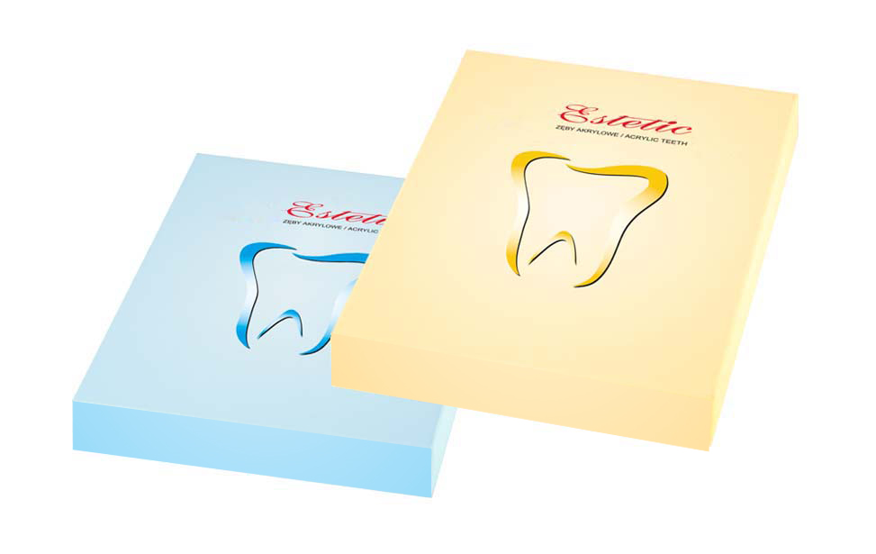 Zęby Estetic mogą być stosowane do protez ruchomych całkowitych, szkieletowych, licowania koron i mostów, a także do wykonywania uzupełnień opartych na implantach. Charakteryzują się zwiększoną twardością i odpornością na ścieranie dzięki zastosowaniu do produkcji wysoce usieciowanych akryli. Tak jak zęby naturalne mają efekt fluorescencyjny i anatomiczne kształty. W ofercie występują w dwóch gamach kolorystycznych: uniwersalnej V (16 kolorów) A1-D4 oraz WIEDENT (13 kolorów) A1-R5. Produkujemy je w 62 fasonach. Wśród nich są również fasony małych zębów przednich przeznaczonych do pedodoncji. Pacjentom z wybielonymi zębami proponujemy zęby w dwóch bardzo jasnych kolorach OM1 i OM3 - po 14 fasonów w każdym z nich.